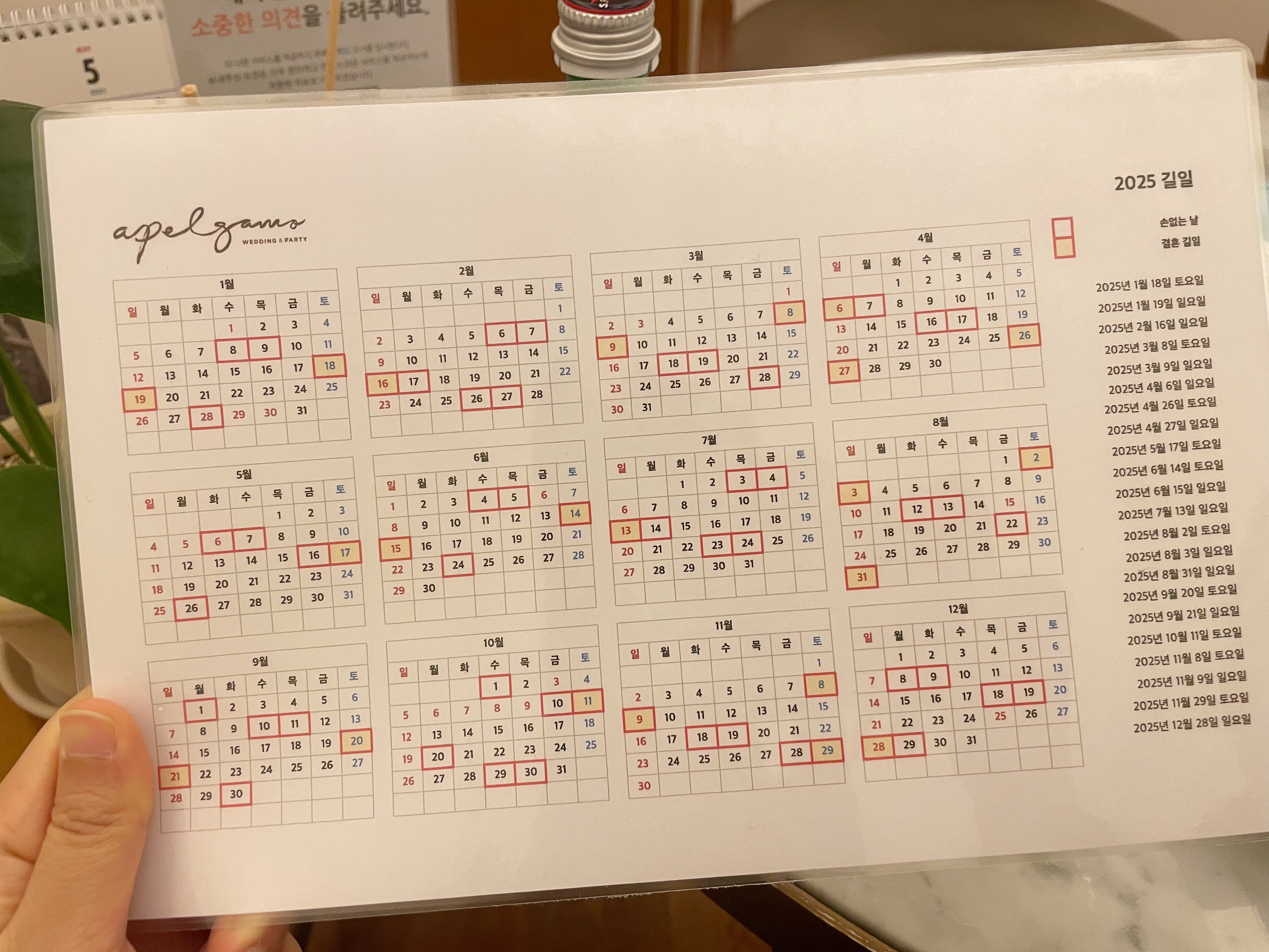 교통, 식사, 주차 전부 괜찮았고. 비용도 과하지 않고 적정선. 무엇보다도 내 개인의 취향에 맞았는데, 밝은 홀도 싫고 어두운홀도 싫었던 나에게 채플분위기의 고즈넉한 조도, 돔 천장, 샹들리에가 딱 취향저격이었다. 그리고 홀 중간에 기둥이 없는것도. 중간에 기둥이 있으면 기둥에 시야가 가려서 불편한데, 아펠가모 공덕은 그런게 없어서 좋았다. 오빠도 보는눈이 나와 비슷했는지 마음에 들어했기 때문에, 생각보다 큰 고민 하지 않고 홀을 결정할 수 있었다. 마지막으로 날짜 고민은 좀 했는데,,,, 이게 일요일 오후 시간대로 가면 금액이 말도안되게 낮아져서 어쩔수없이 마음이 마구마구 흔들렸다ㅋㅋㅋㅋ 그래도 양가 어르신 의견 반영해서 비싸더라도 토요일에 하는걸로... 첫 타임으로 잡았는데 이것도 너무 이르다고 걱정하셨지만.... 다 완벽할수는 없다!!!! 난 이대로 만족. 계약 끝!!! 생각보다 번갯불에 콩구워먹듯이 진행된 홀투어와 계약이었는데... 그래도 여태 마음에 걸리는 것 없이 만족하고 있다. 곧 시식후기로 돌아오겠읍니다...
